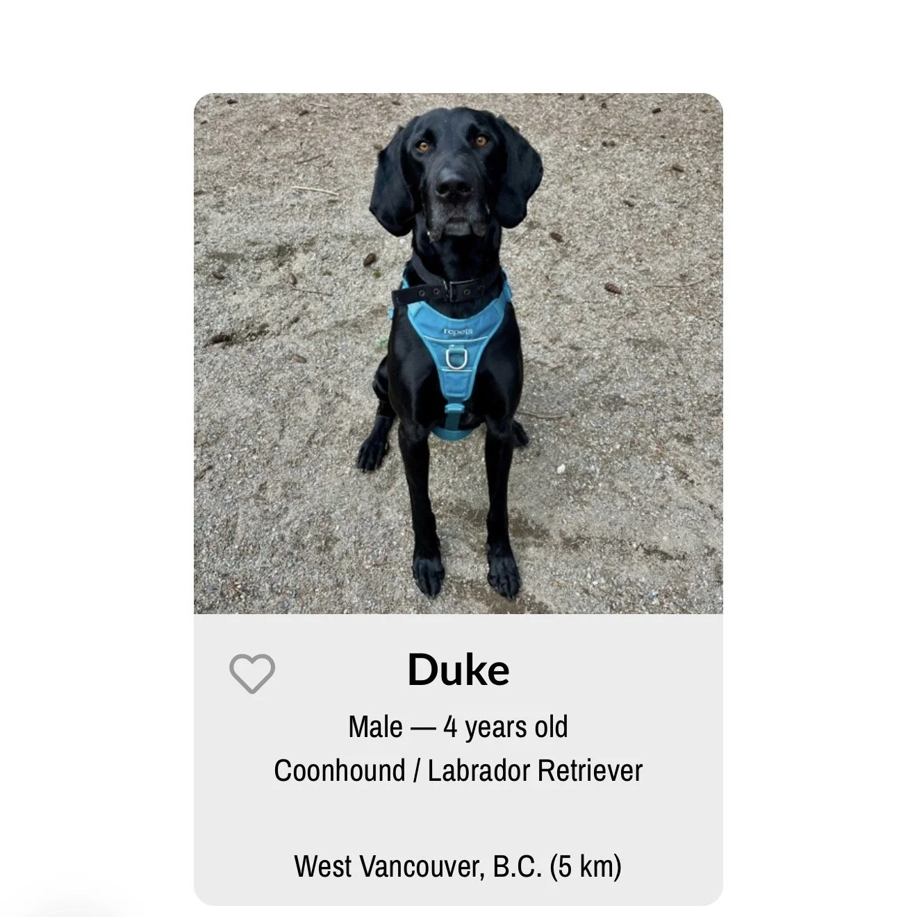 Meet Duke, a 4-year-old Coonhound / Labrador Retriever mix currently waiting for his forever home at the BC SPCA in West Vancouver.